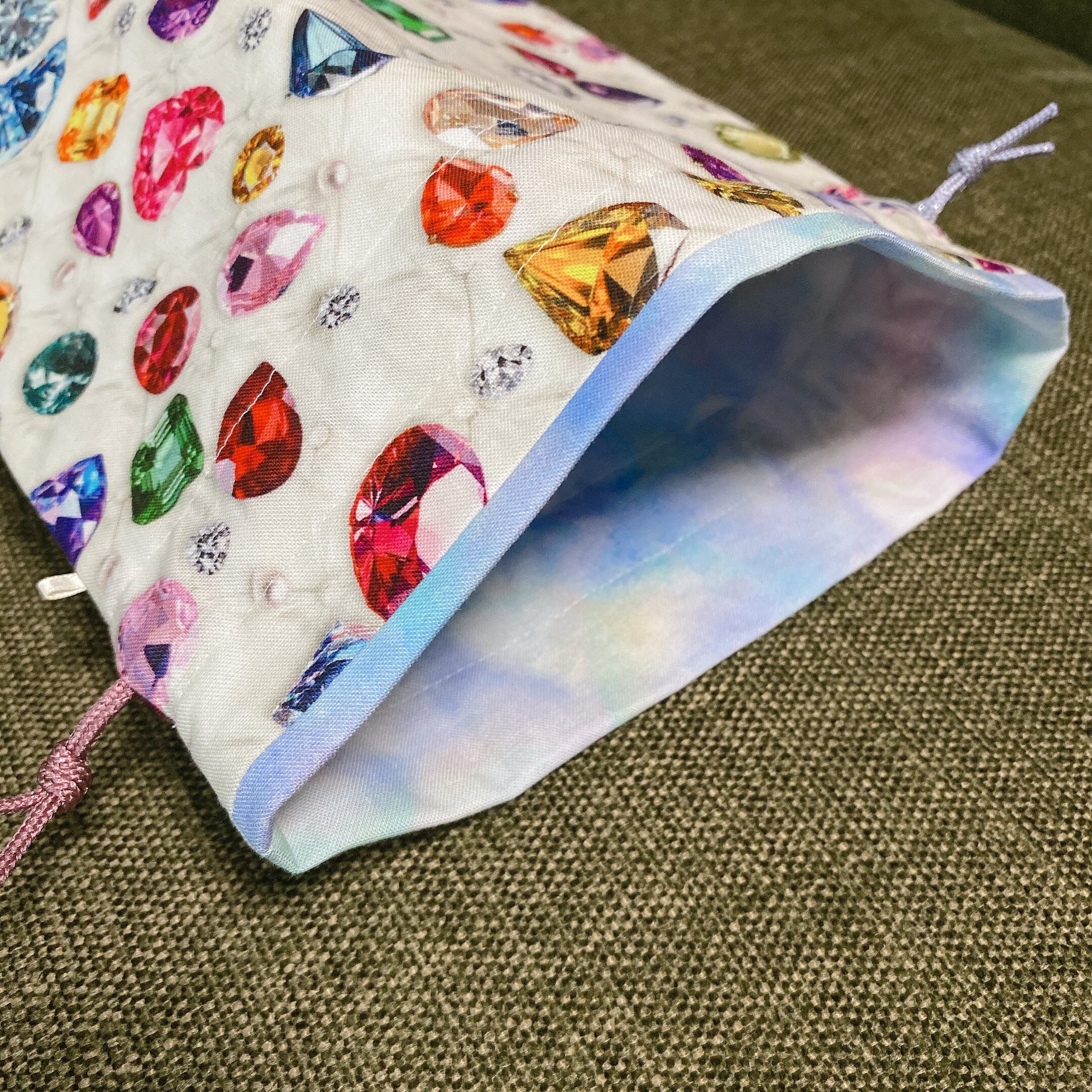 表生地にはゴージャスな宝石が煌めき、彩雲柄のUSAコットンが表生地を引き立てます。